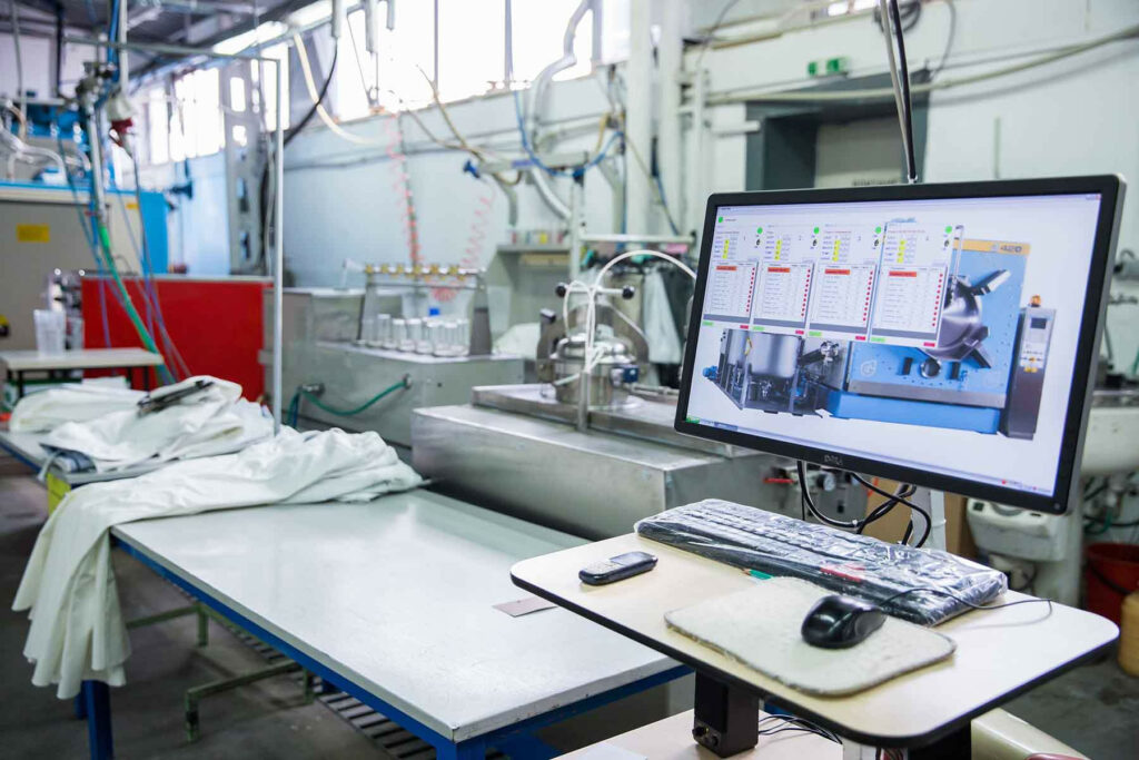 Second, we consider waste water. In our own treatment plant, the waste water from our washing and dyeing department is purified mechanically, chemically and biologically and undergoes constant control against residues. Every day at over 100 measuring points in the factory, the consumption of electricity, gas, water, steam and compressed air is documented. Thus, changes in consumption and possible sources of loss can be identified and immediate maintenance or repair measure can be initiated.